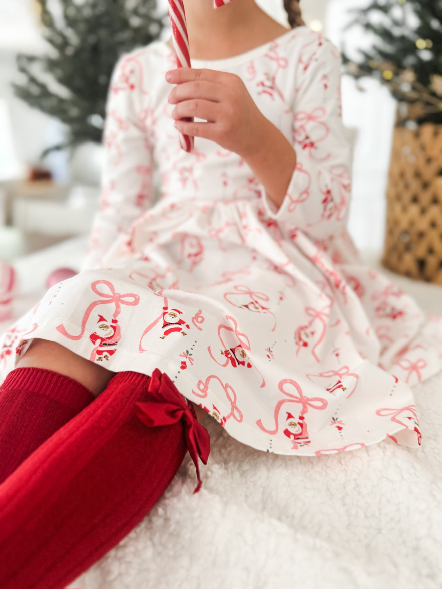 We are just in love with this whimsical Santa design from Thread Mama. It has all the whimsical girly feels with the sweetest pink bows and is so perfect for movie nights, holiday festivities and more!