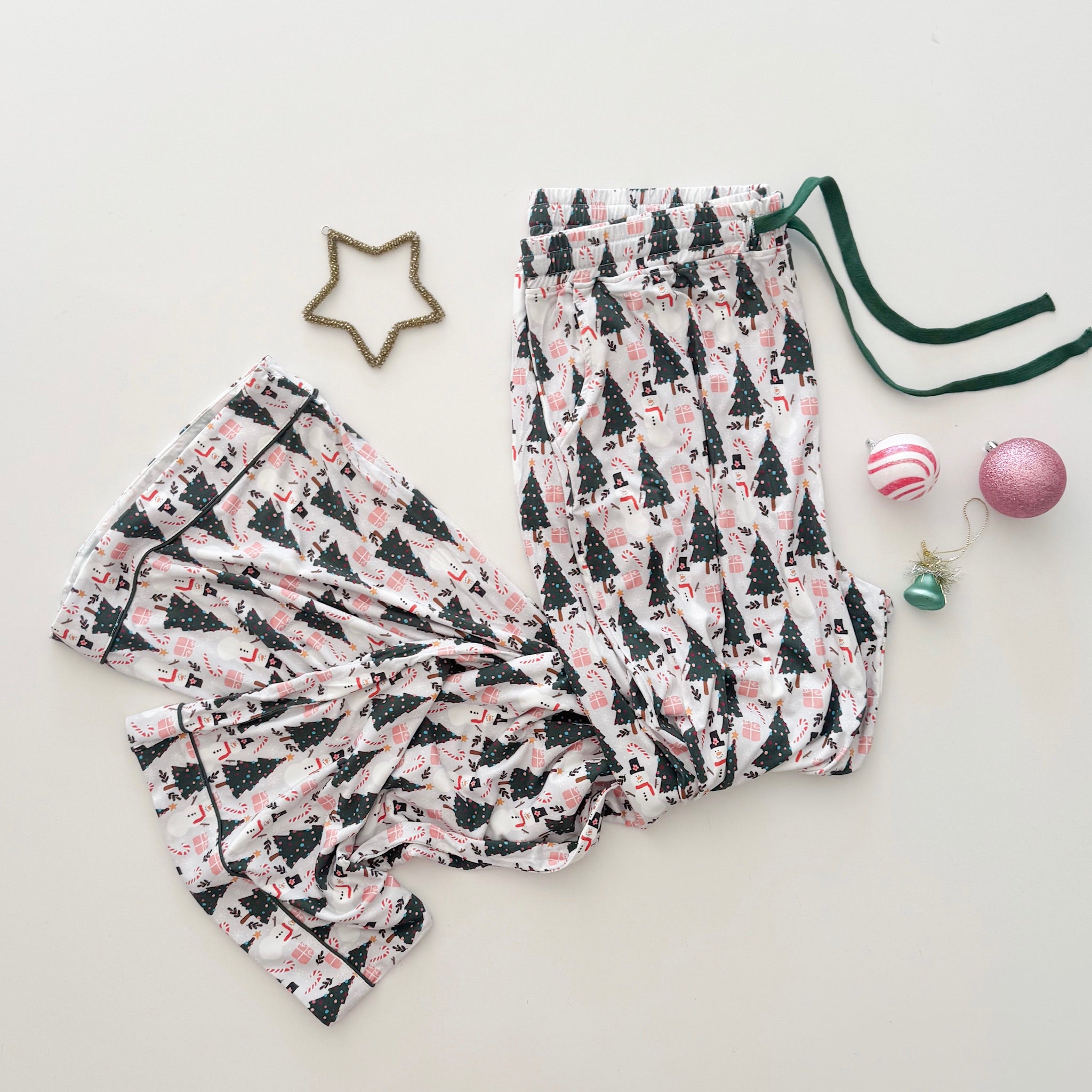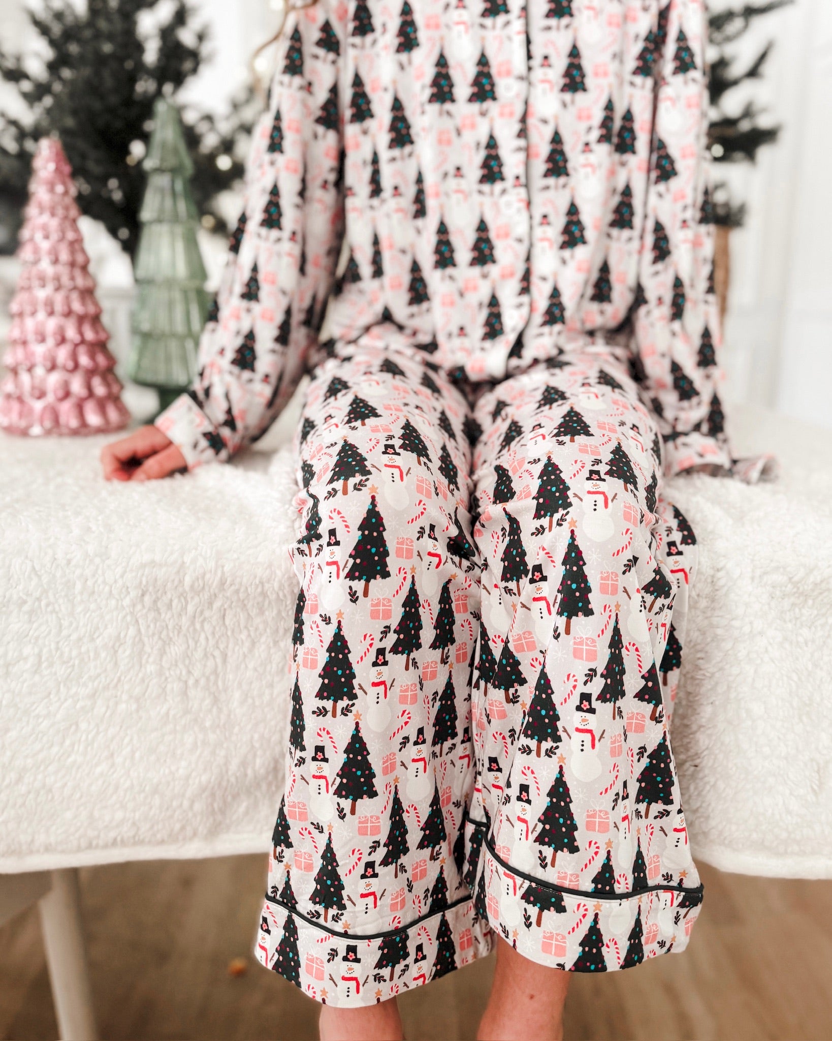 Christmas trees, snowflakes, presents, candy canes & the jolliest snowmen... This collection with it's simple yet nostalgic print is so perfect for movie nights, holiday festivities and more!