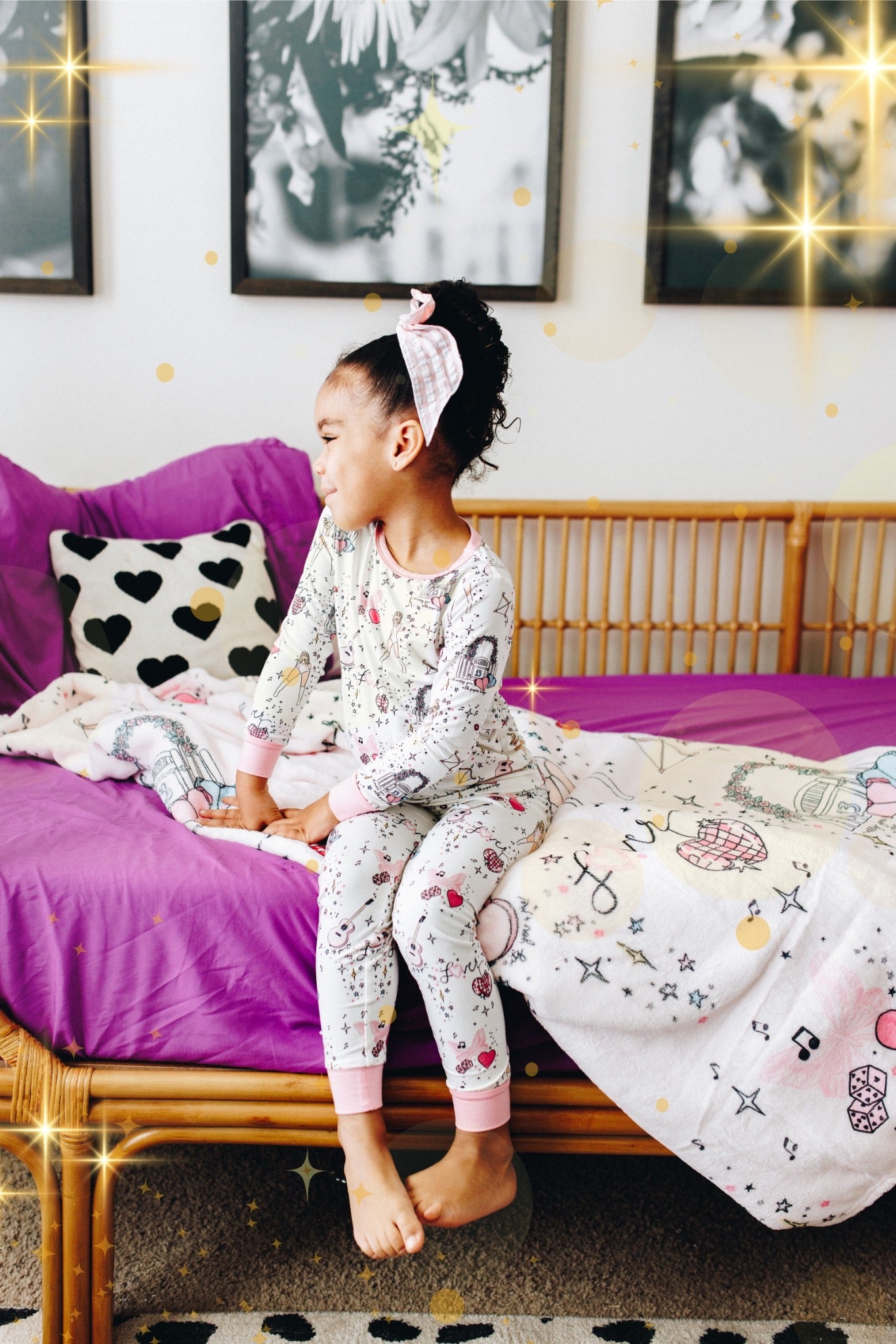 Our sherpa blankets are so soft & plush! The design is printed on one size and solid light cream sherpa on the other. Perfect for cozy snuggle sessions or dance parties! Pair with our matching bamboo pajama sets for women & kids! FLASH