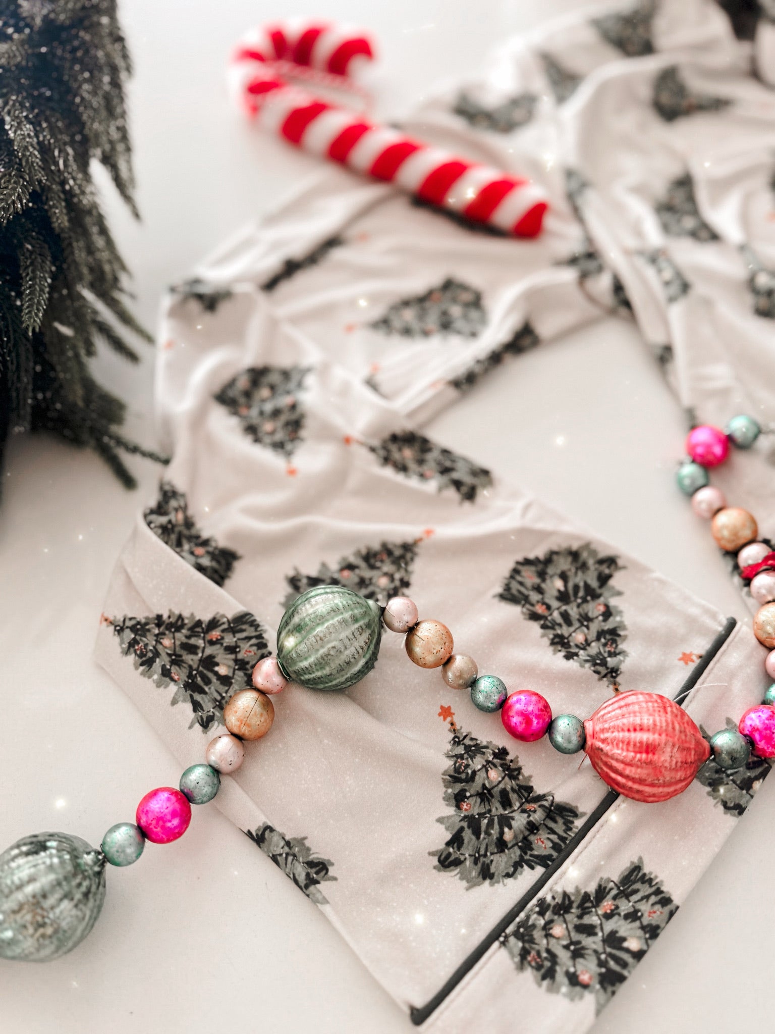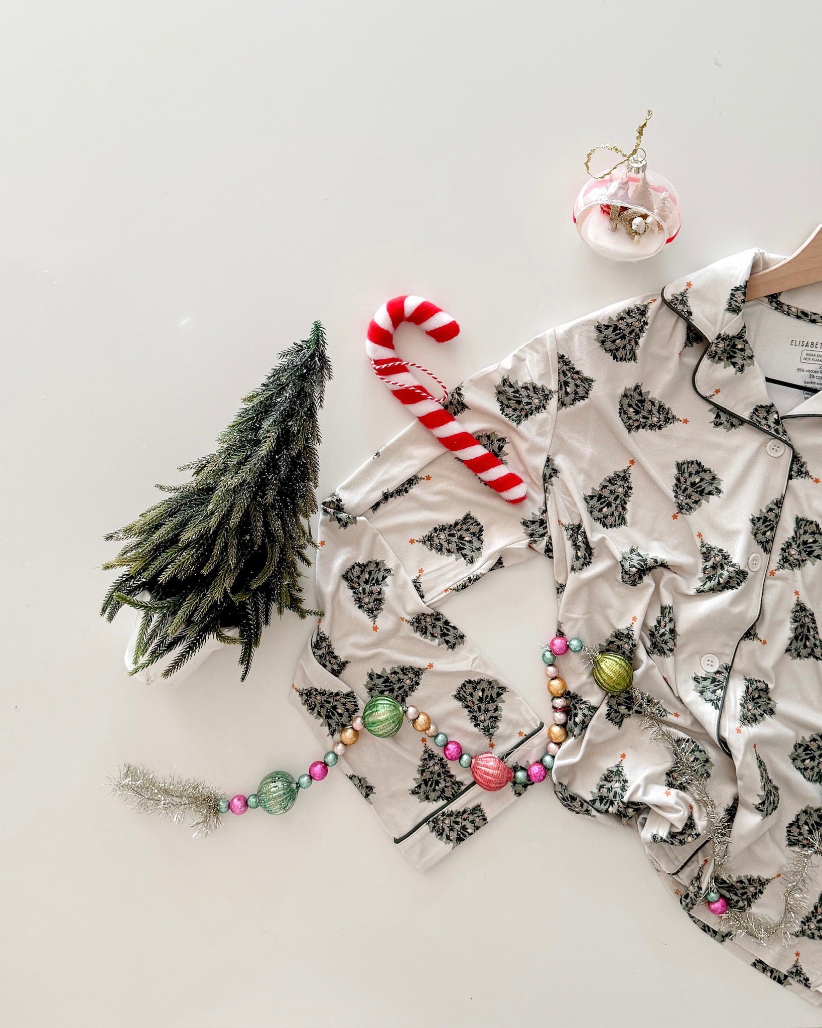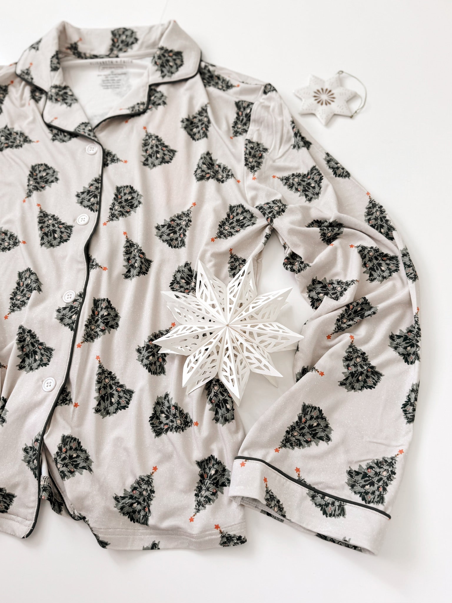 This collection with it's simple yet nostalgic print is so perfect for movie nights, holiday festivities and more! Women's pj's are a button down, long sleep top with relaxed fit bottoms and pockets