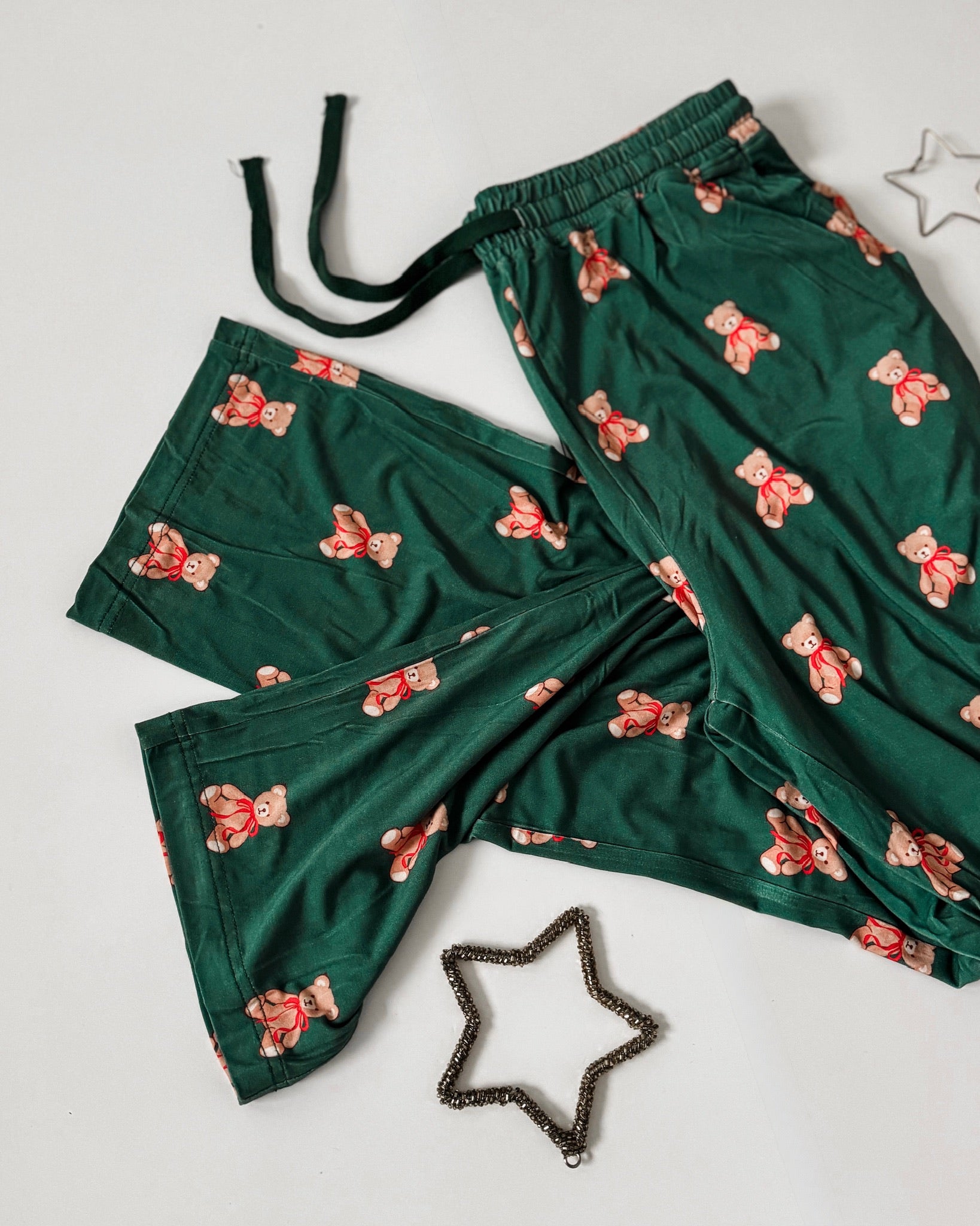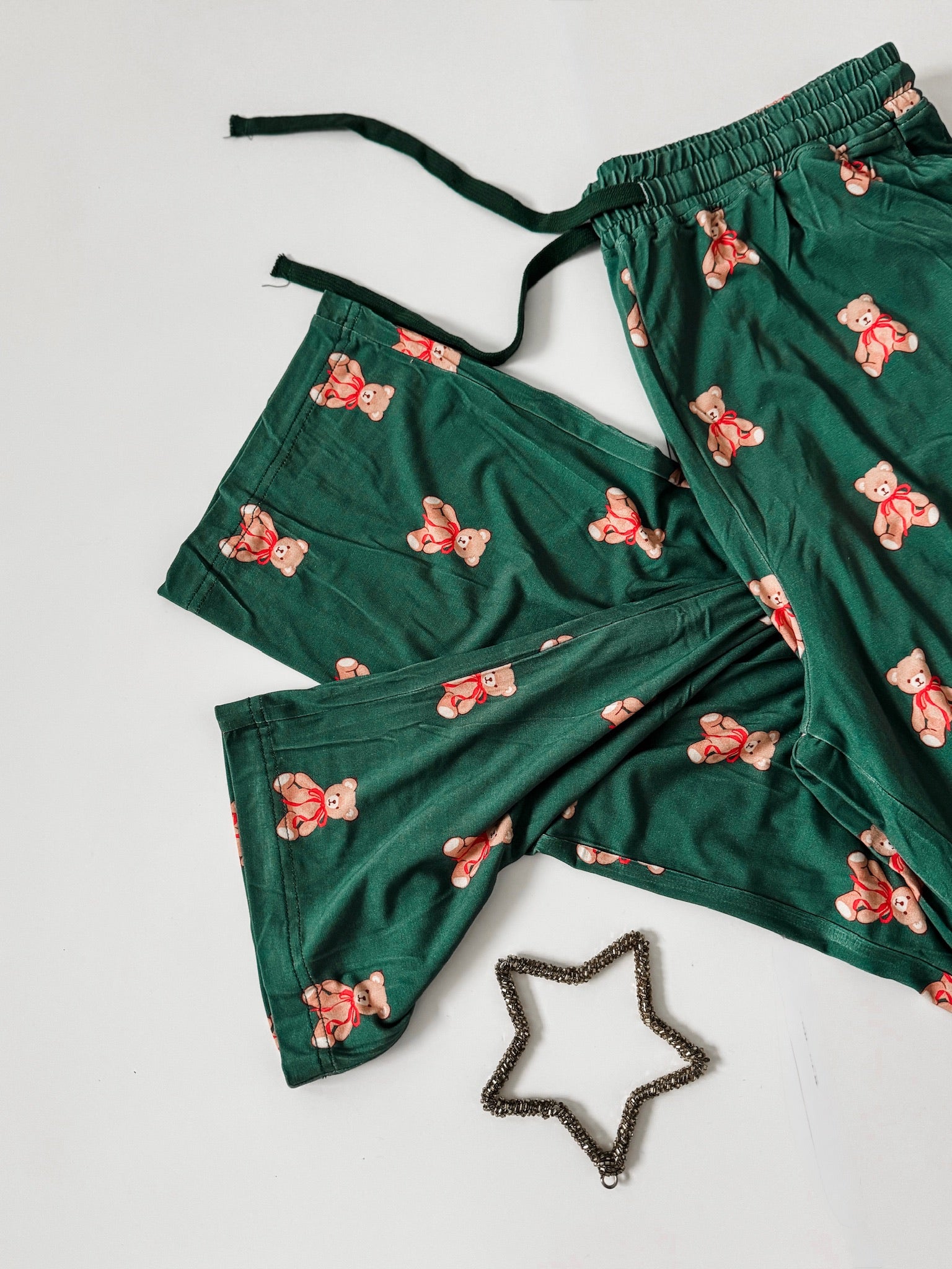 All the cozy comfy teddy bear vibes... This collection with it's simple yet nostalgic print is so perfect for movie nights, holiday festivities and more! The deep forest green and classic teddy bear with the pop of red in the bow make it perfect for Christmas and all winter season long.