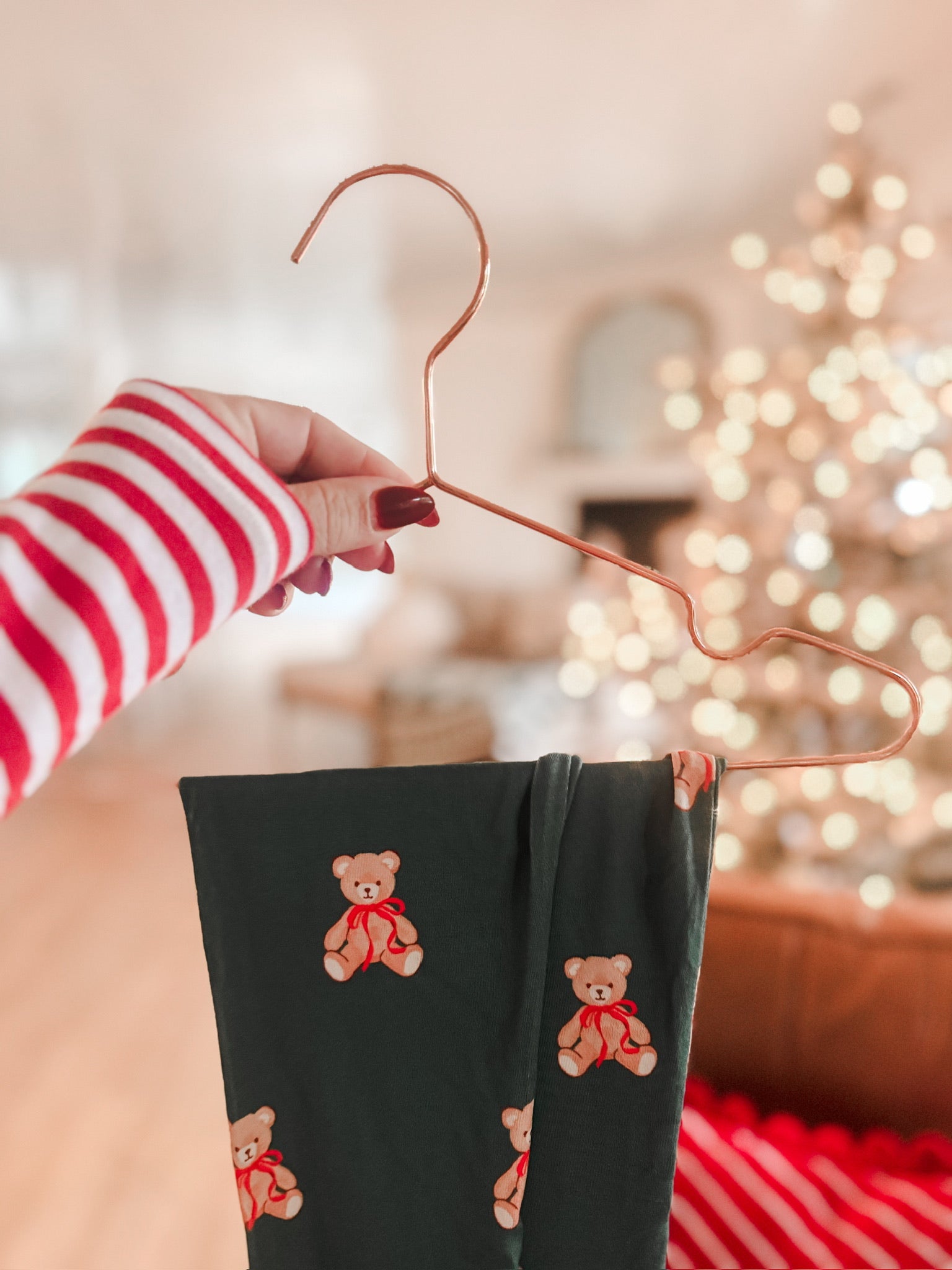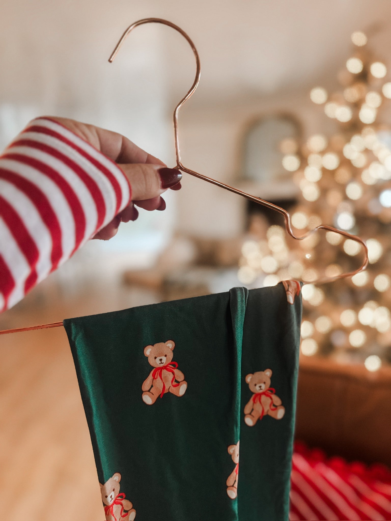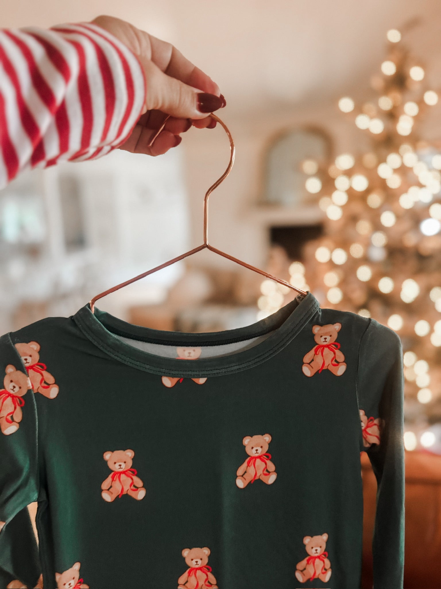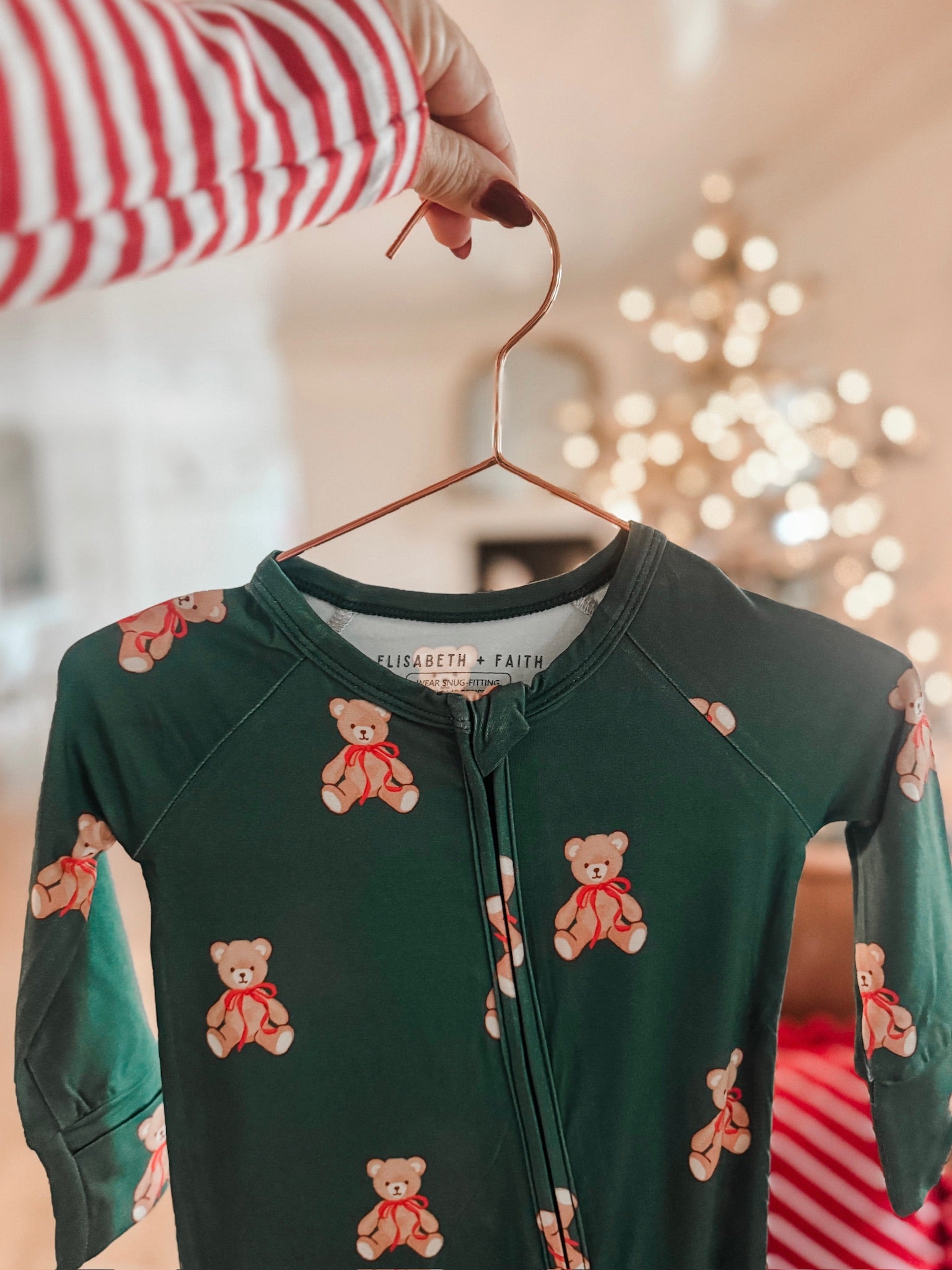 All the cozy comfy teddy bear vibes... This collection with it's simple yet nostalgic print is so perfect for movie nights, holiday festivities and more! The deep forest green and classic teddy bear with the pop of red in the bow make it perfect for Christmas and all winter season long.