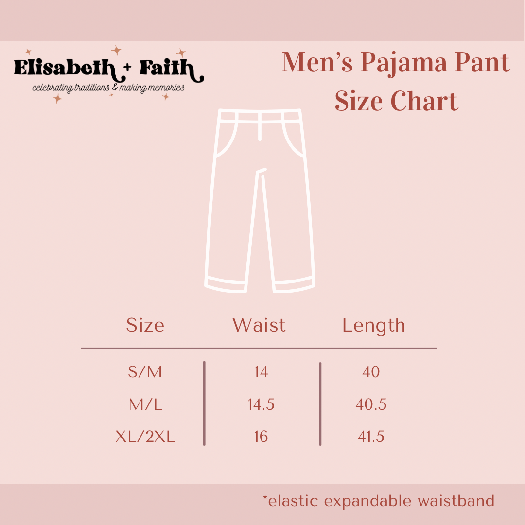 Men's are pajama bottoms only with a drawstring and pockets. Don't forget to add the matching sherpa blanket! Please understand at this time we do not have a try-on photo for this print: coming soon. We have included a previous design from last year to show the style/fit.