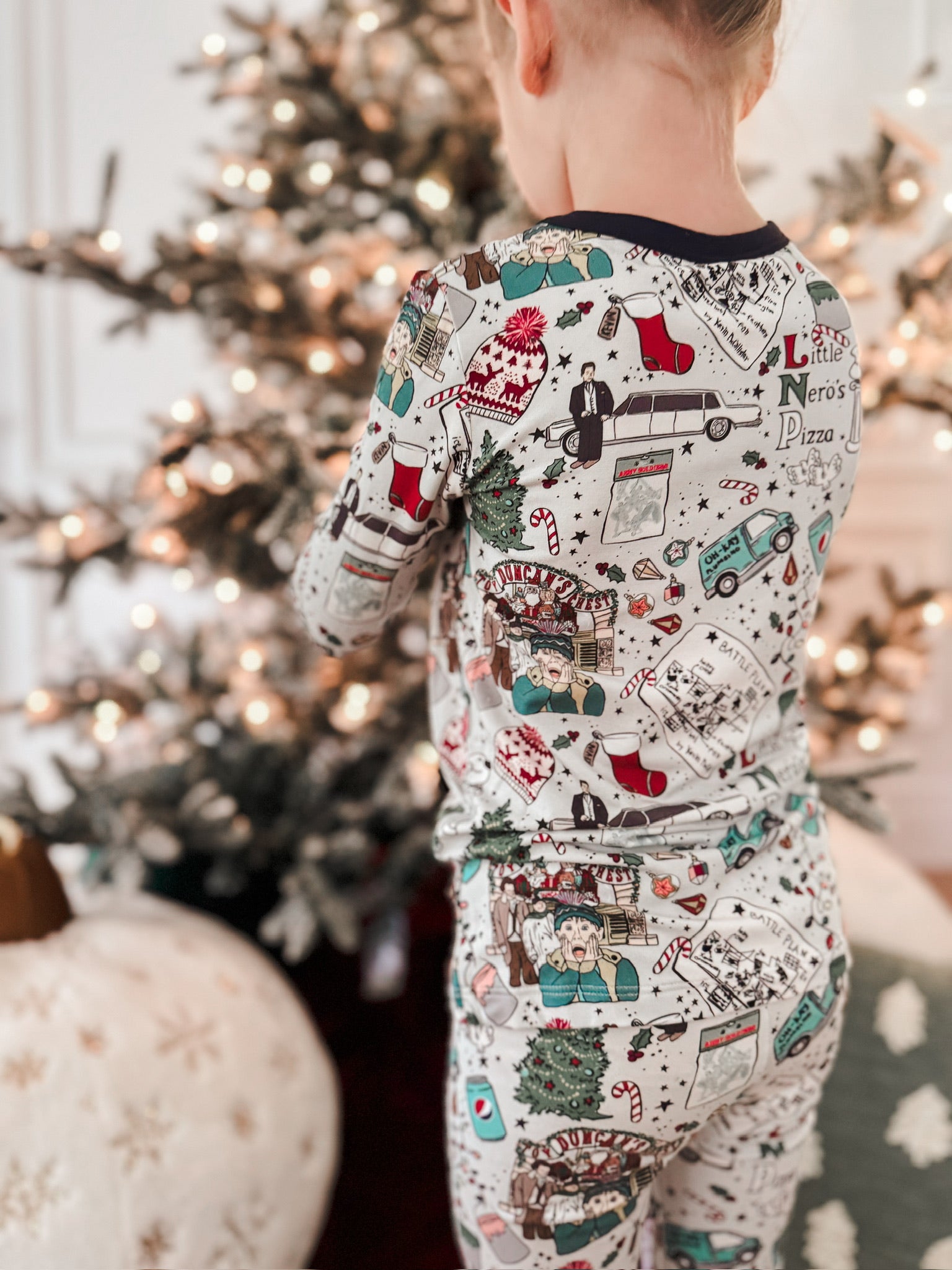 An all new Christmas inspired print exclusive to us by Simply Favi. From battle plans to toy stores, turtle doves to limousine rides in NYC, to hot Chicago pizza. Vintage ornaments to the "bad guys" and of course our favorite Christmas beanie!