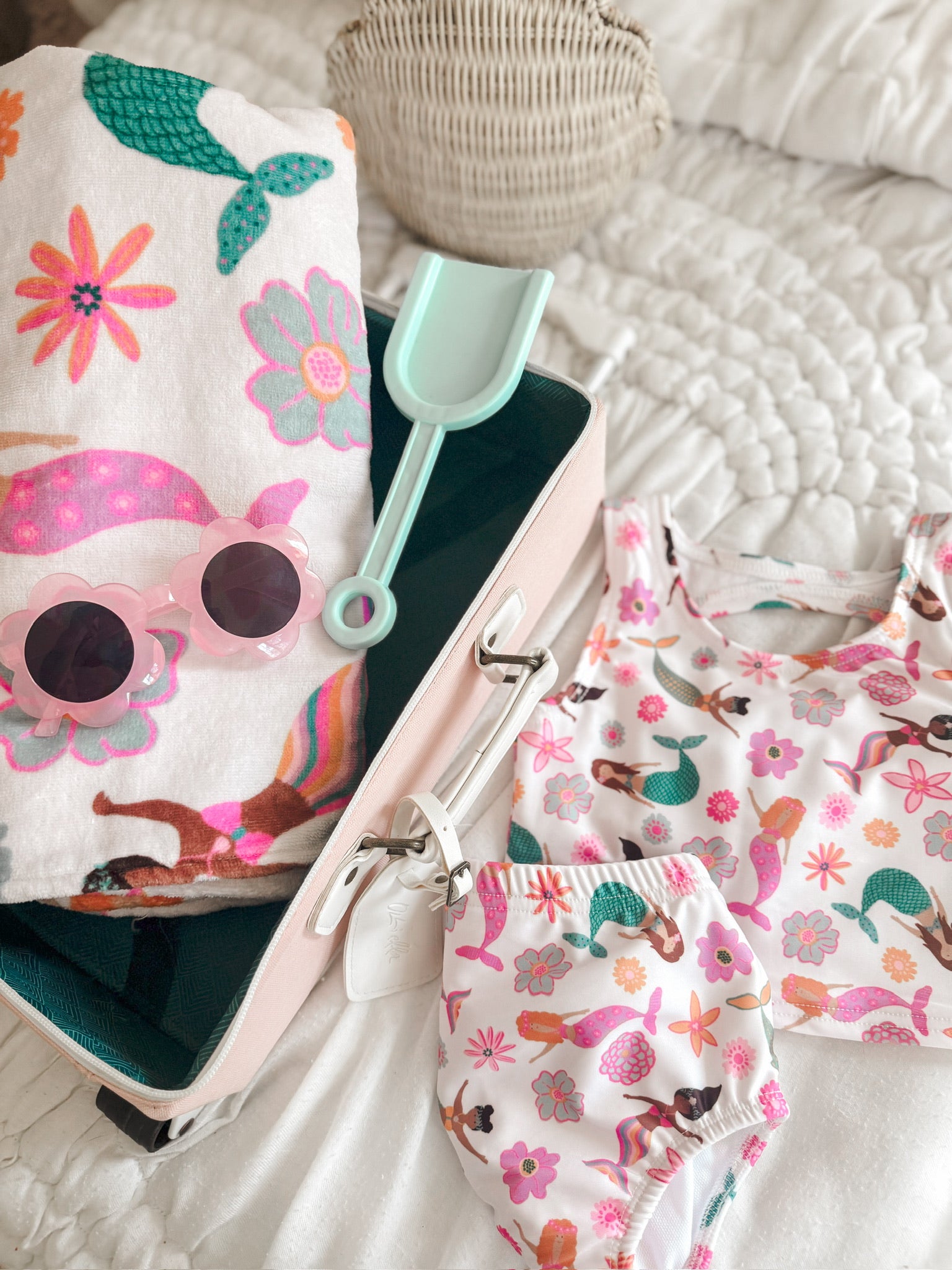 Our beach towels are 100% cotton and STANDARD sized. You will be sure to have the cutest towel at the beach or pool! Don't forget to grab the matching swimsuit!