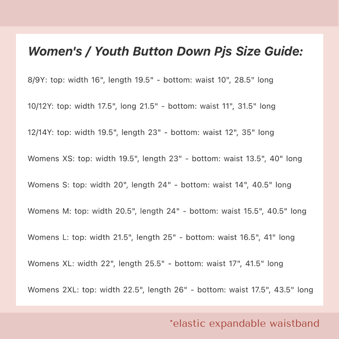 Fits true to size. We recommend to order your normal size. Set includes a button down top and pants. Pants have an elastic expandable waist, please see the size chart in the media photos.